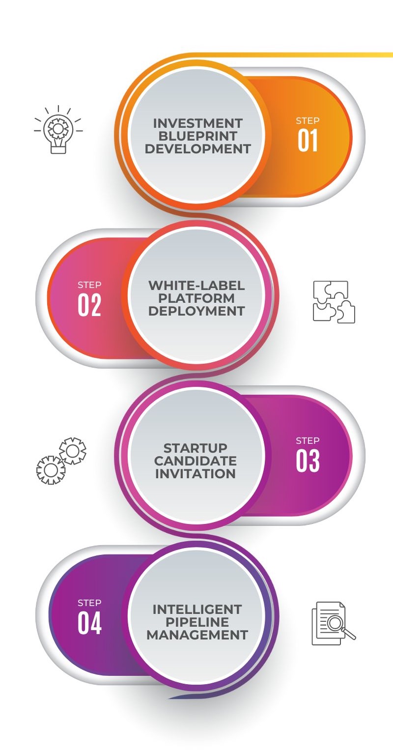Your deal flow remains entirely proprietary. Startups you invite see only your branded platform—never Vaeliou's network or other investors' activity. Your Investment Blueprint, evaluation criteria, and pipeline composition stay completely confidential.